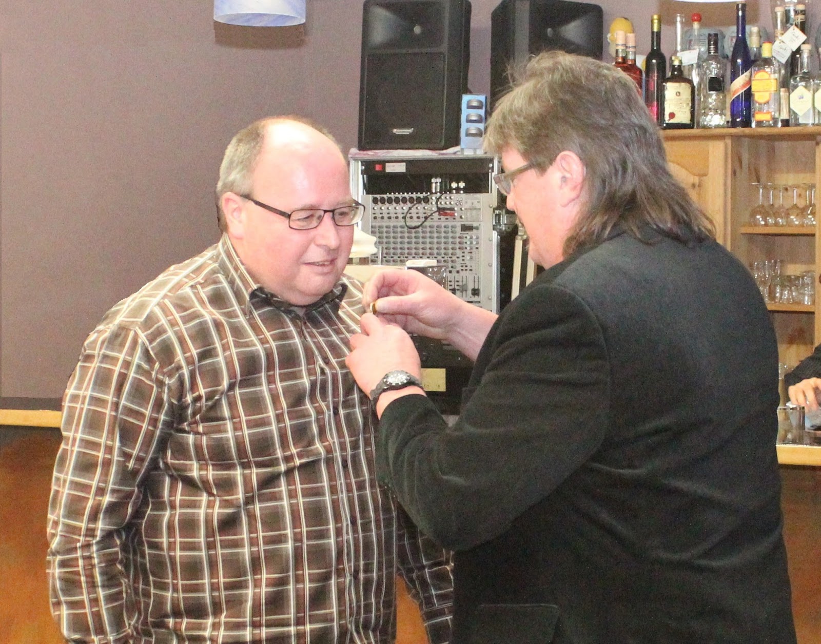 Martin Stotz bekommt die Ehrennadel für 40 Jahre aktive Musikertätigkeit.